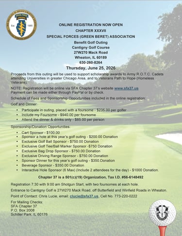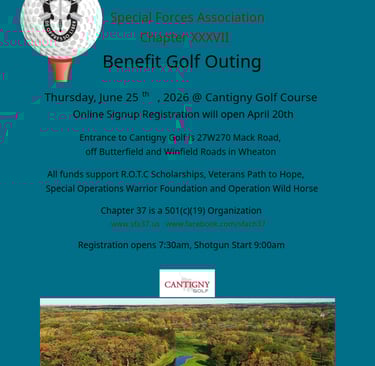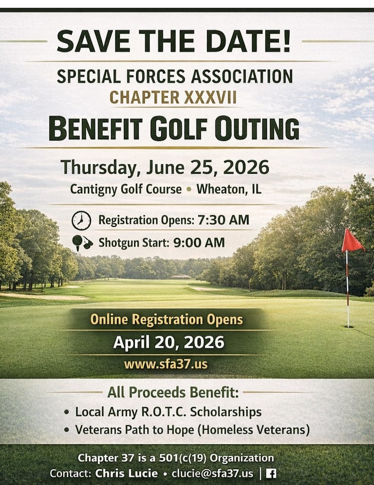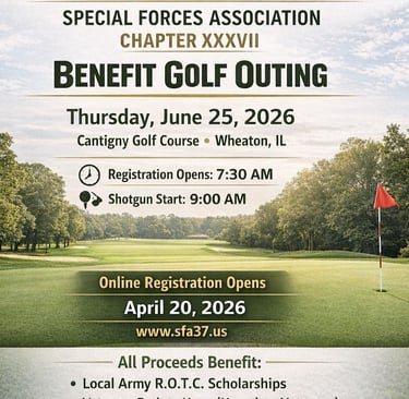 The Special Forces Association is a non-profit, fraternal organization committed to the preservation of the history and traditions of Special Forces. In addition, it serves to promote camaraderie among past and present members of Special Forces as well as its associates. The Special Forces Association, Chapter XXXVII is located in The Greater Chicago Area